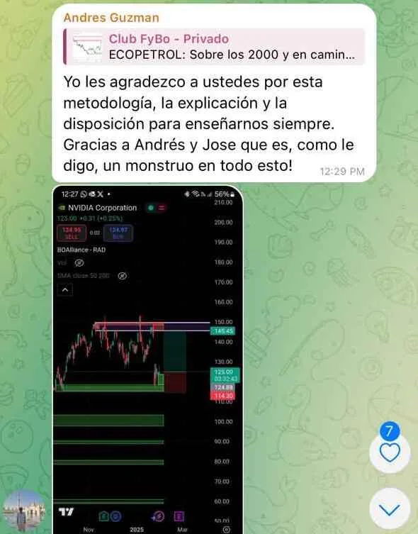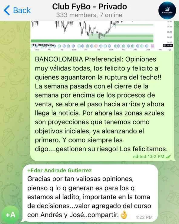 Acceso al club de conversación de inversionistas élite en Telegram / WhatsApp. En este camino no estarás solo/a, una vez ingreses, formarás parte de una comunidad exclusiva de inversionistas, donde podrás aprender, compartir estrategias y recibir apoyo en tiempo real de personas que están en el mismo proceso que tú